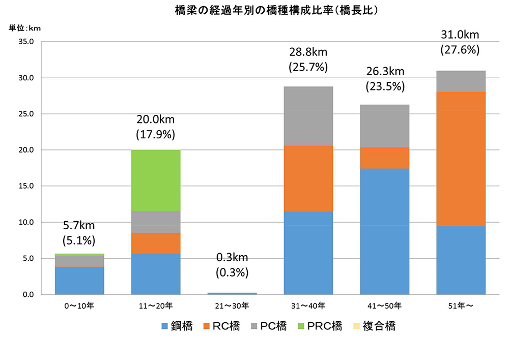 橋種別比率と経過年別橋種構成比率(橋長比)