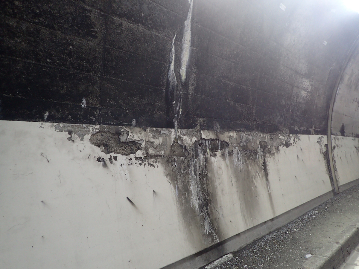 ――トンネルでは、おもに覆工コンクリートの目地部のひび割れや漏水が確認されているとのことでしたが、地山が影響していると推察される変状は発生していないですか