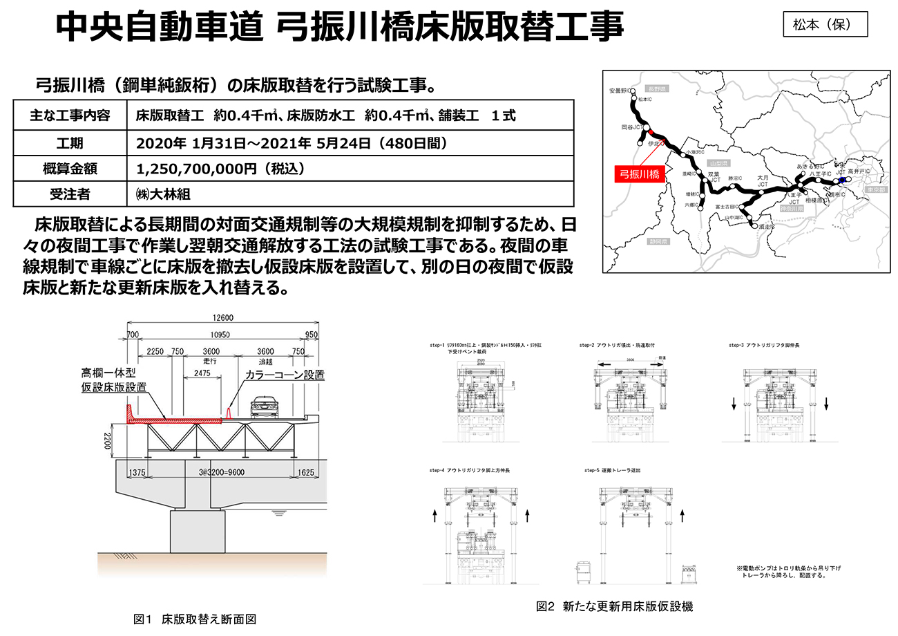 ――諏訪南IC~諏訪IC間の弓振川橋では、御社と大林組が共同開発した新たな床版取替工法を採用していると聞いています