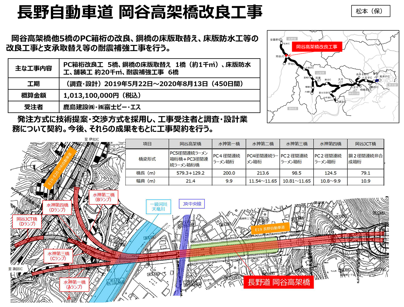 ――そのほかの高速道路リニューアルプロジェクトについて。中央道・岡谷高架橋改良工事は