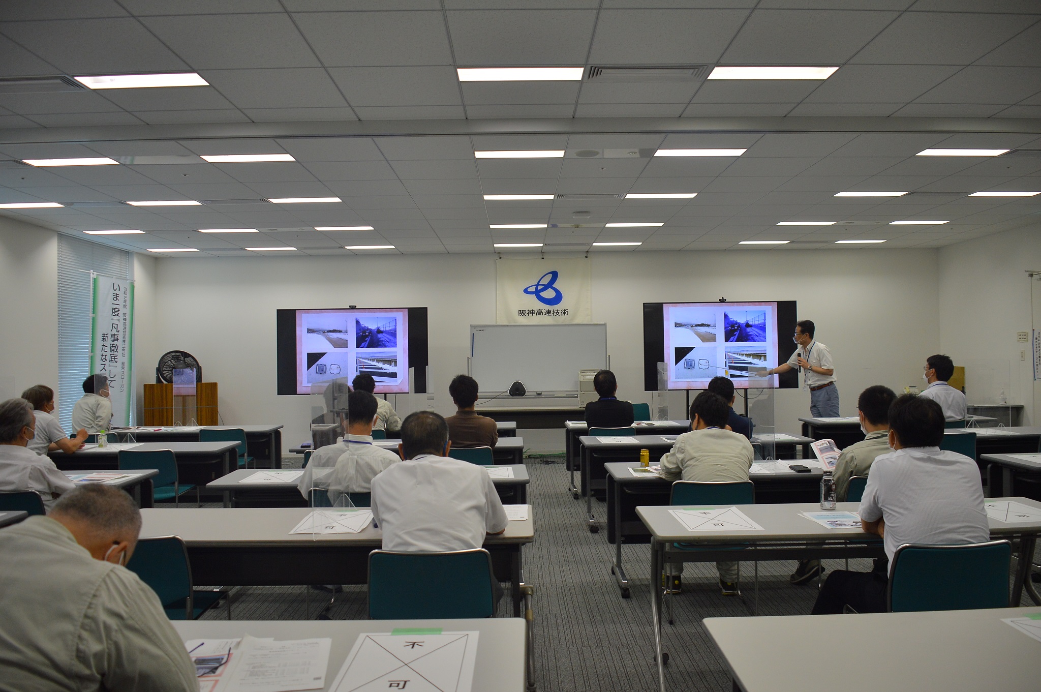 また、2018年に社内に保全技術研修室という部署を設けて、当社だけでなく阪神高速道路グループ全体の保全技術の研修が行えるような場を作っています。阪神高速道路の過去の補修データをもとに、阪神高速道路に特化した研修を行っています。