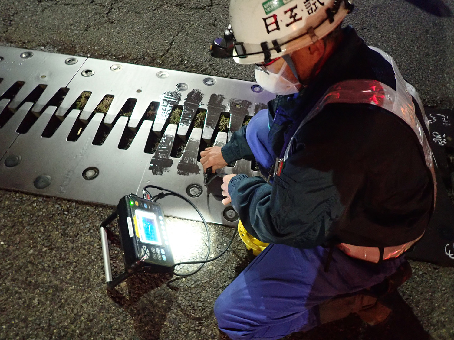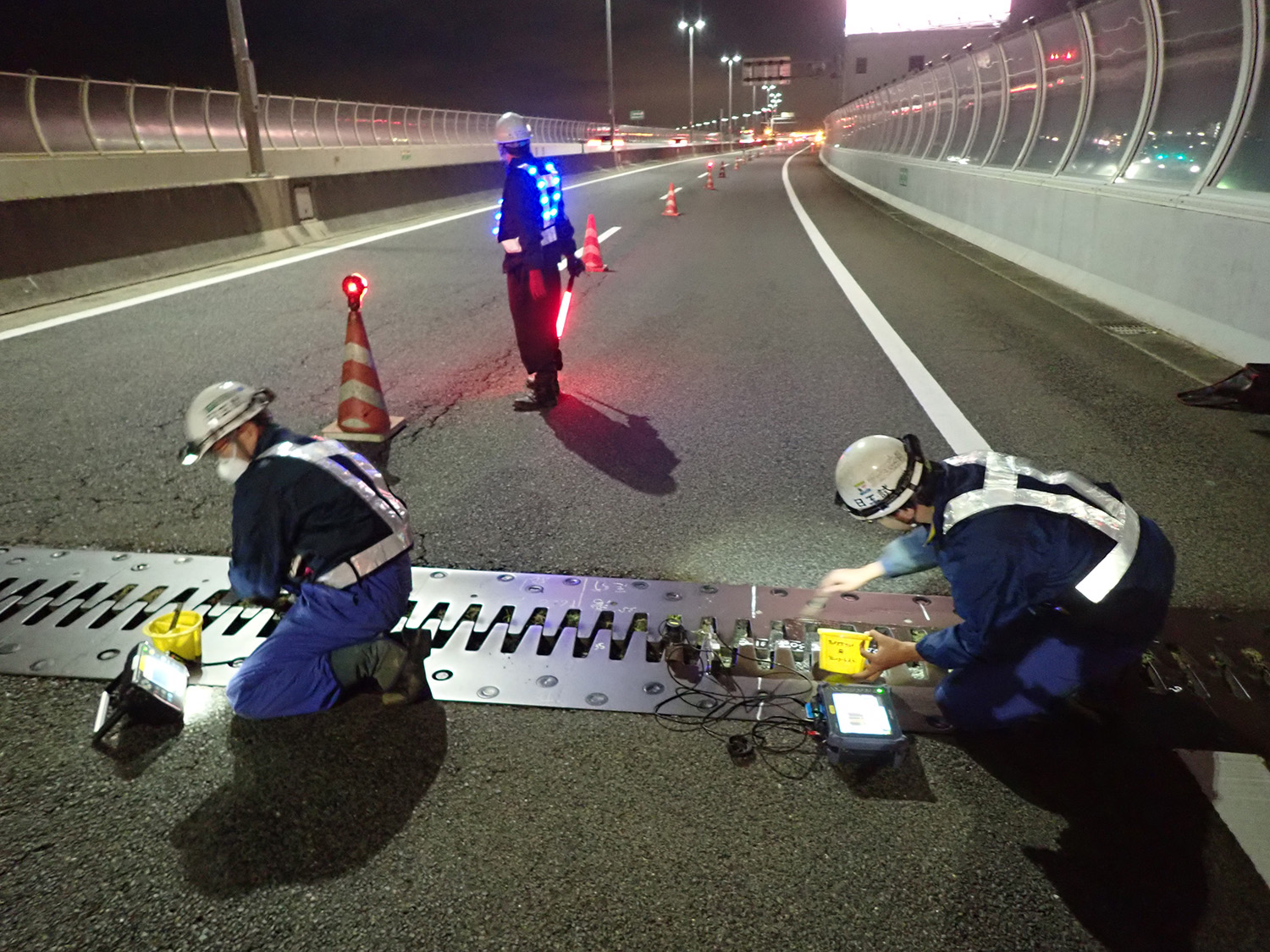 立石 フィンガージョイントの効率的な検査方法として、日本工業試験所と共同開発した、フェイズドアレイの超音波探傷法と開口合成法の2つを使って、腐食と亀裂の2つの損傷を一挙に図る手法を開発しました。これにより検査に要する時間が1レーンにつき90分程度必要だった調査時間を30分程度に短縮できます。昨年度から試験適用しています。