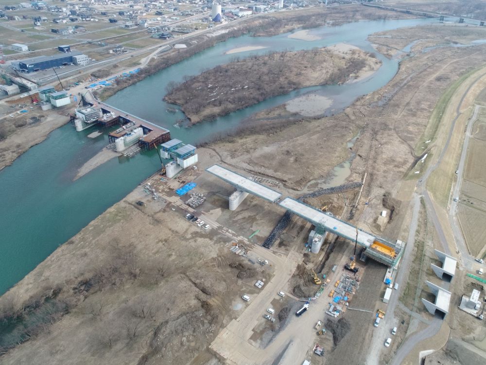 鳥山 JRTTでは常磐新線(つくばエクスプレス)の利根川橋梁、小貝川橋梁、成田高速鉄道の印旛沼橋梁などで今回のような桁配置の実績があります。