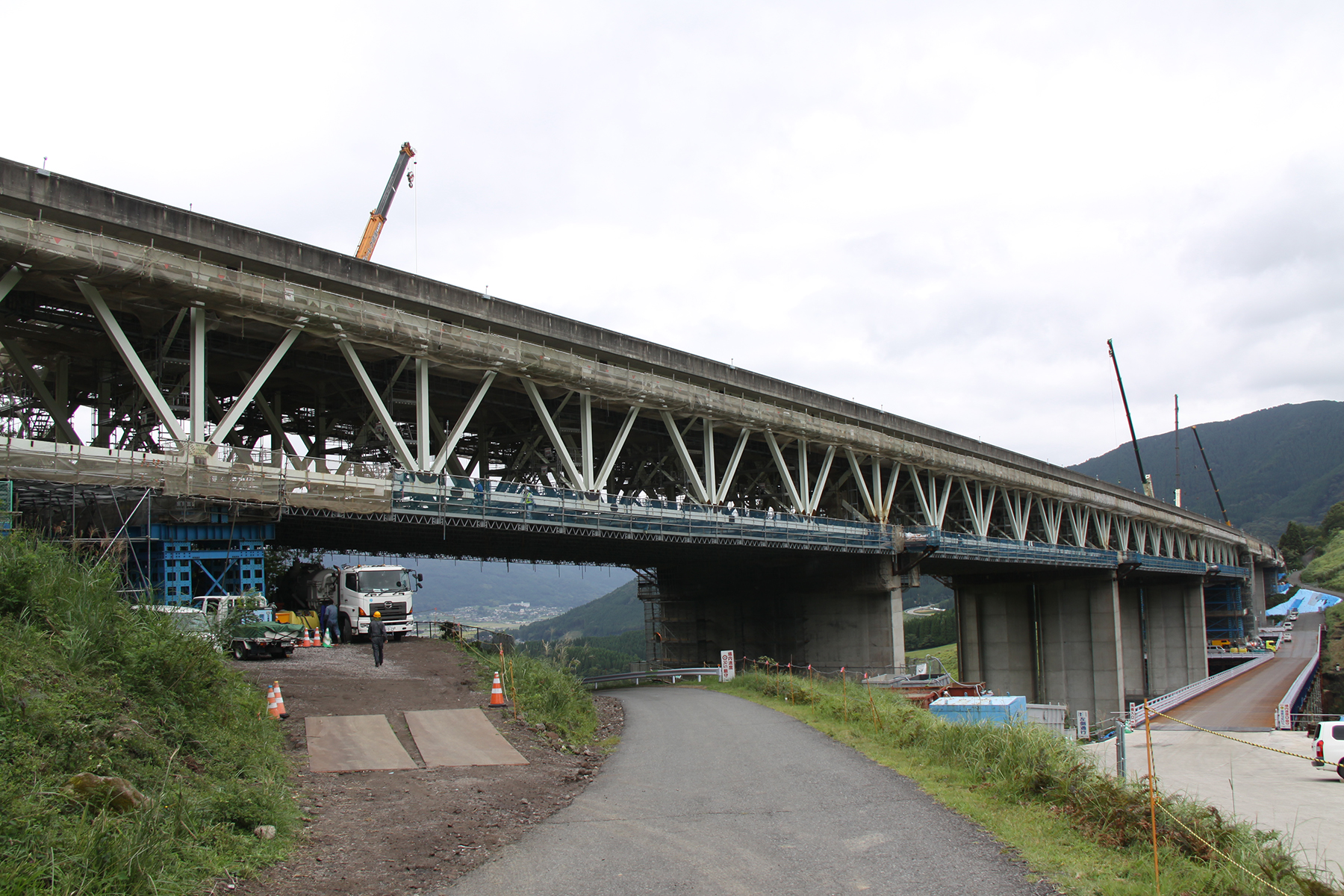 松田 少し前になりますが、熊本地震で大きな被害を受けたNEXCO西日本の白滝川橋、並柳橋では、当社の総力を結集して、短期間での補修補強、復旧を成し遂げました。