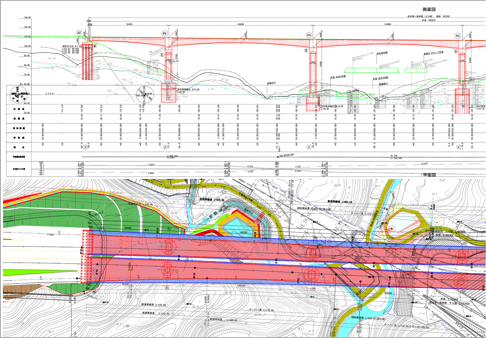 ――梶原橋と金龍寺川橋、成合第二高架橋については