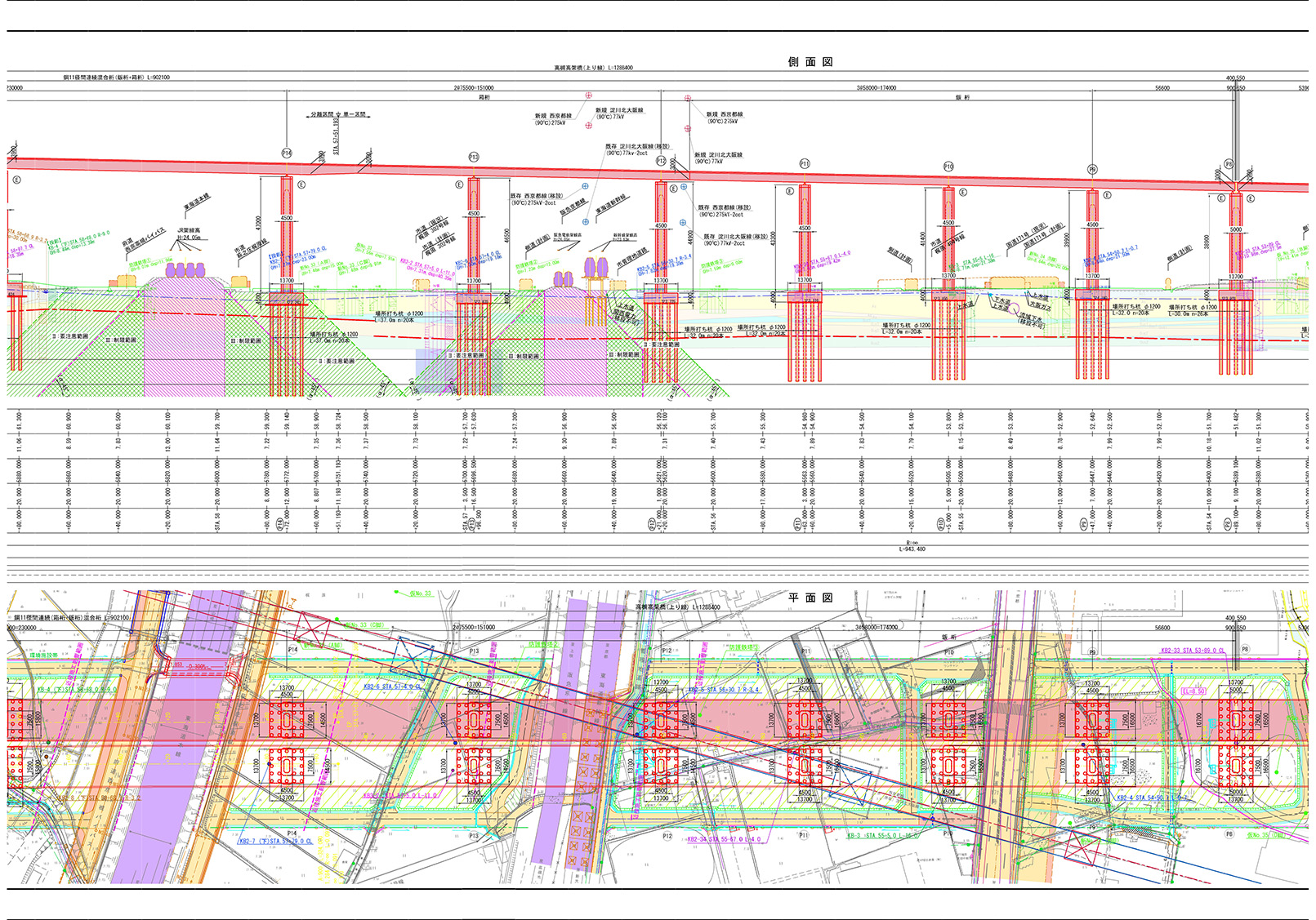 徳田 高槻高架橋のP2から西側を大阪西事務所で工事を進めておりますが、そこでは、鋼管ソイルセメント工法を採用していません。場所打ちの方が、コスト的にも構造的にも適していると判断しました。場所打ち杭の径はφ1,200mmです。