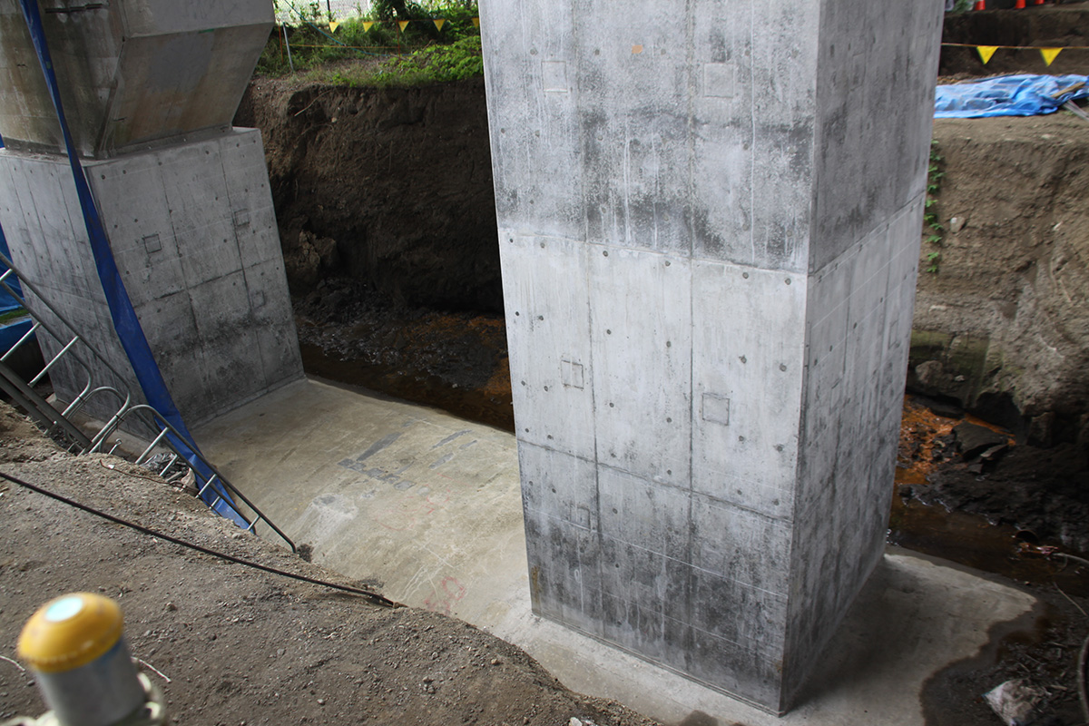 浦 コンクリート巻き立て(ラーメン化)もしくはブレース(横つなぎ斜材)で補強をしました。