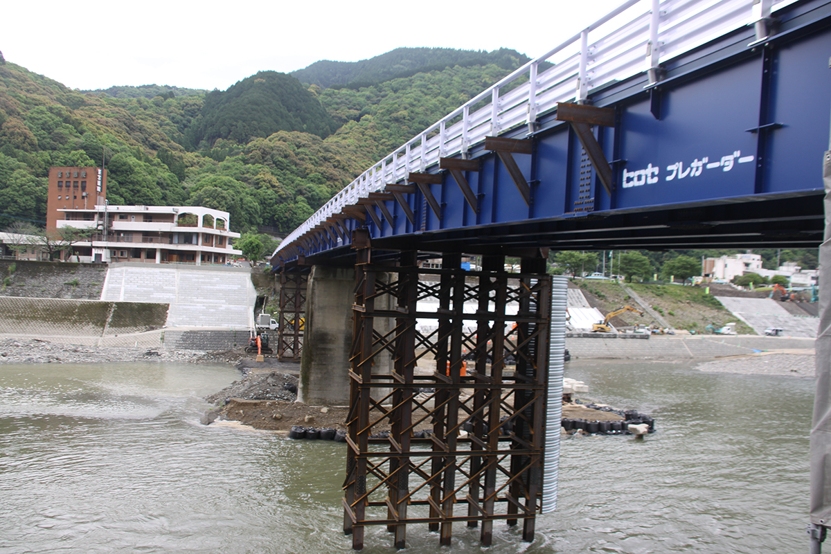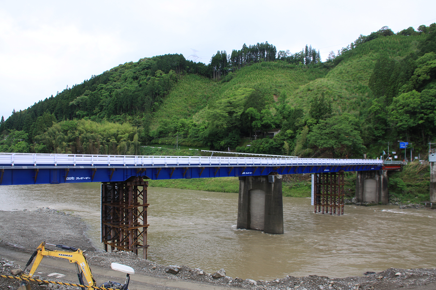 相良橋が5月21日、坂本橋と鎌瀬橋が5月28日にそれぞれ仮橋をかけて復旧しました。