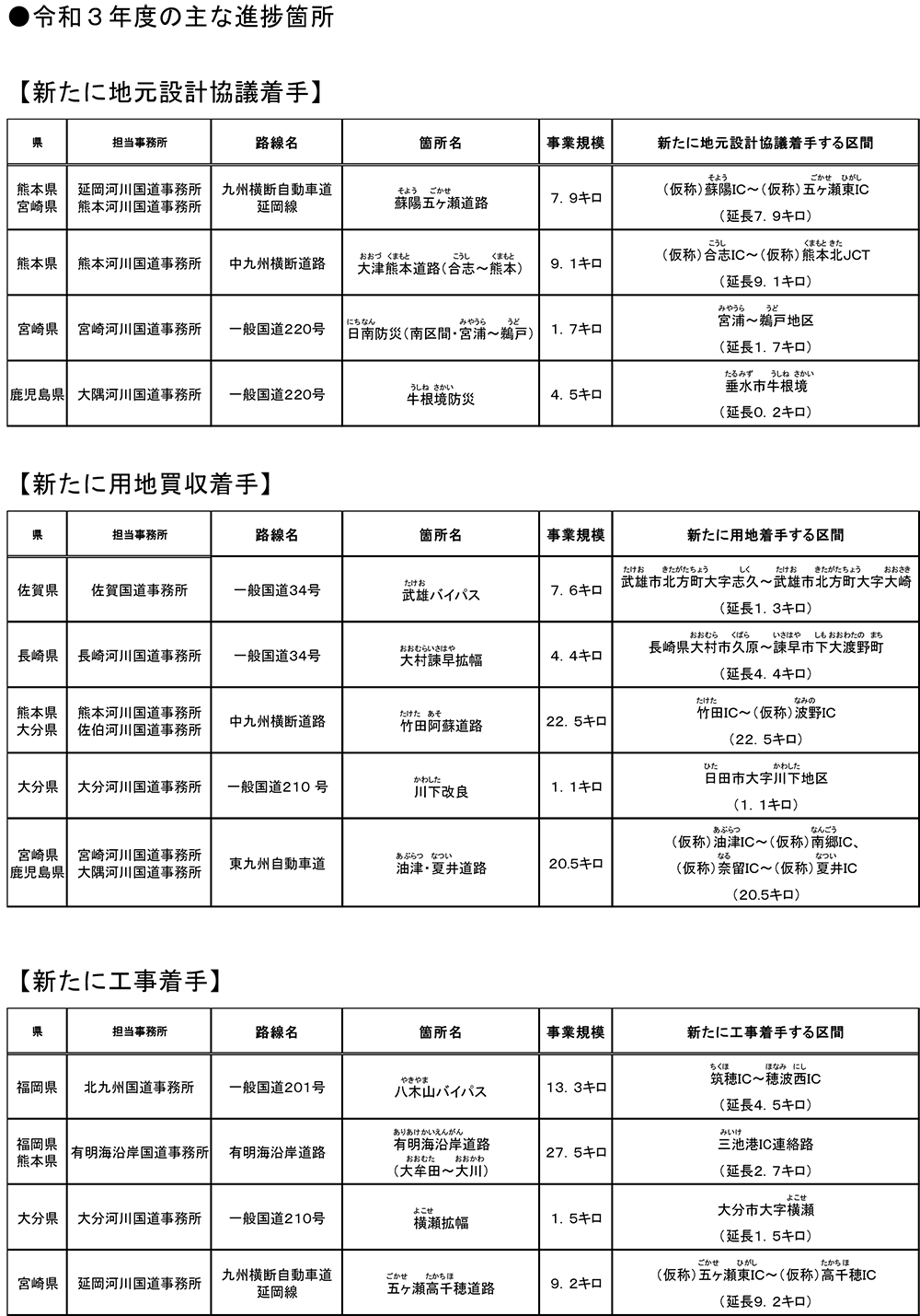 主要改築事業 今年度は東九州道志布志IC~鹿屋串良IC間19.2kmが開通予定