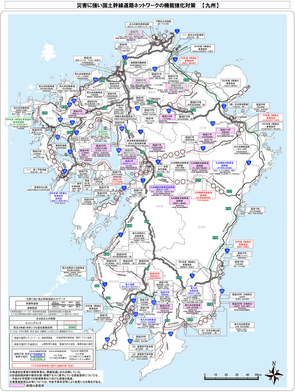 国土強靭化の予算は5年間で15兆円の規模が閣議決定されましたが、それに伴い事業がどれだけ進捗しているか透明化していく必要があるということで、見通しが立った事業については工事着手時期や進捗状況、開通予定などを適宜周知しています。