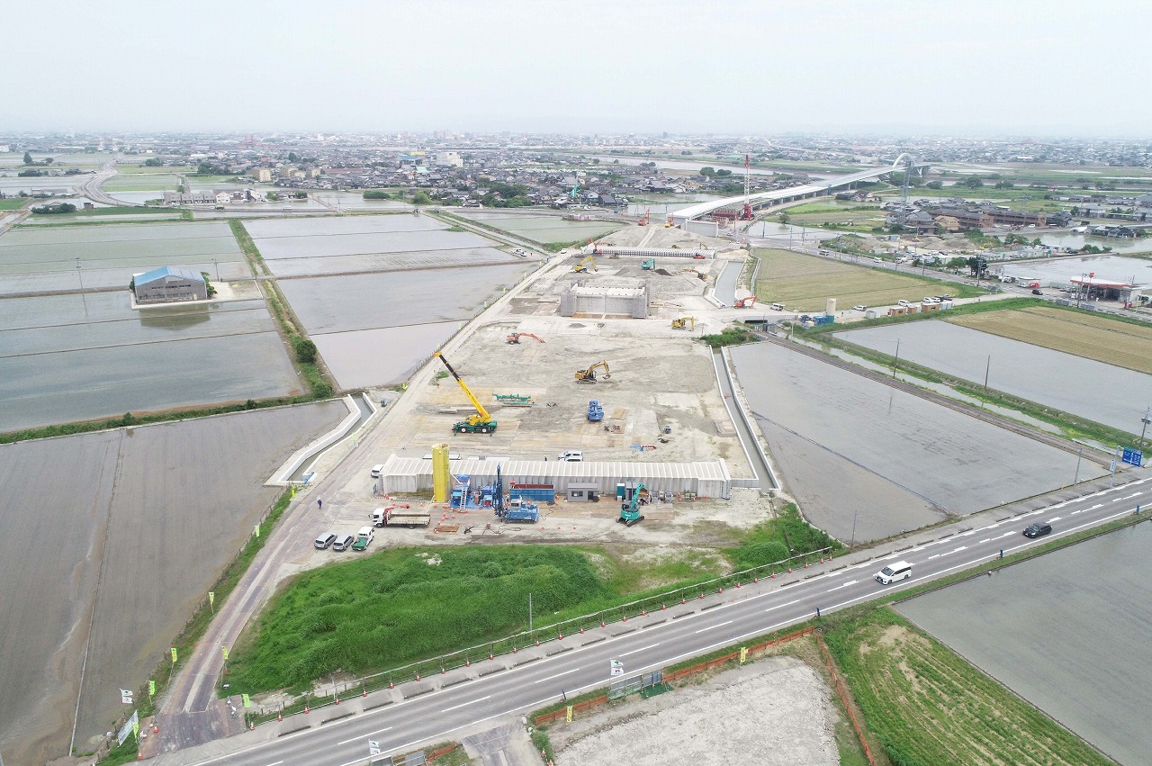 有沿道 諸富IC付近で大規模な地盤改良工を実施