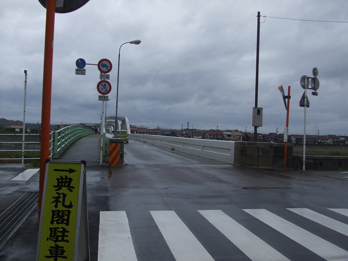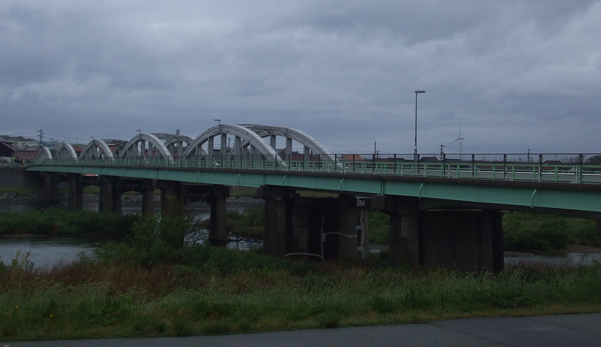 土木遺産の高角橋は幅員が狭く、上流側に新設橋梁を含めたバイパス事業を展開
