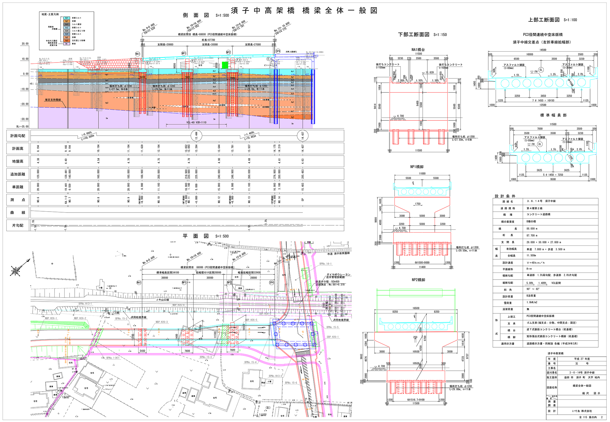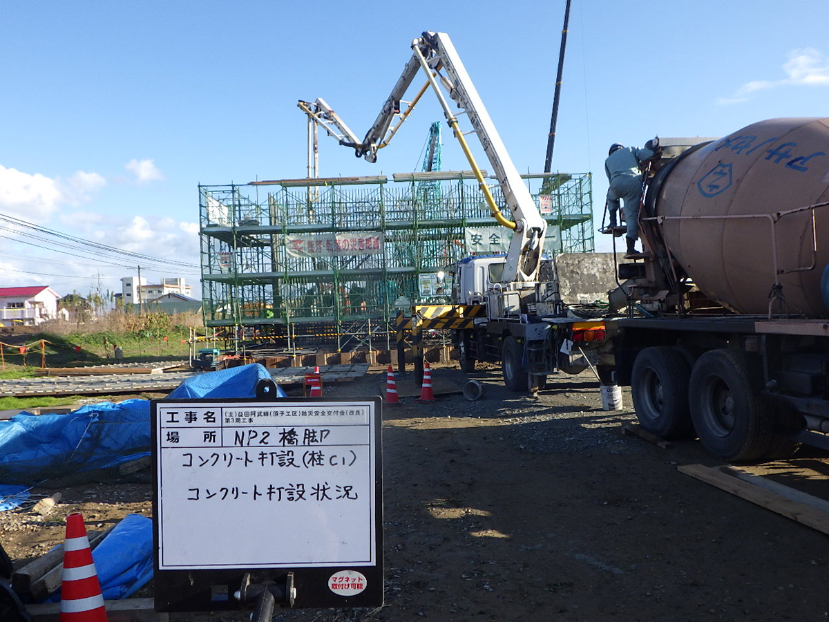 市川 橋長88mのPC3径間連続中空床版橋で、下部工は3基あり、NP2橋脚が完了、NA1橋台とNP1橋脚が施工中です。