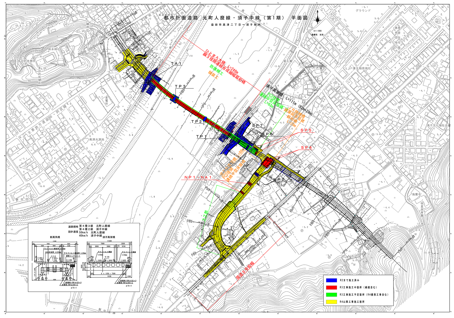 元町人麿線(新高角橋工区)・益田阿武線(須子工区)の事業平面図