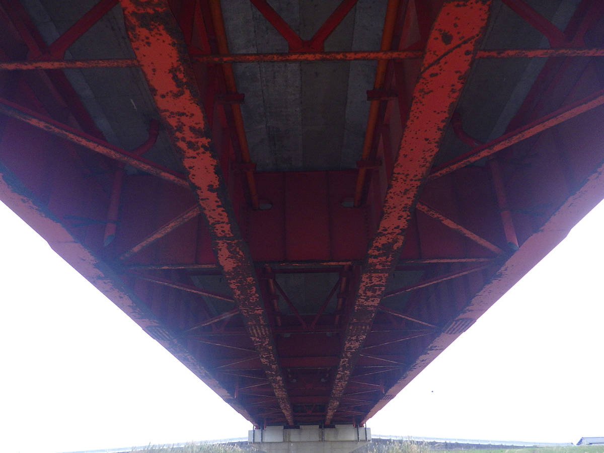 鋼橋塗替え事例(斐川一畑大社線灘橋)右:施工前/左:施工後