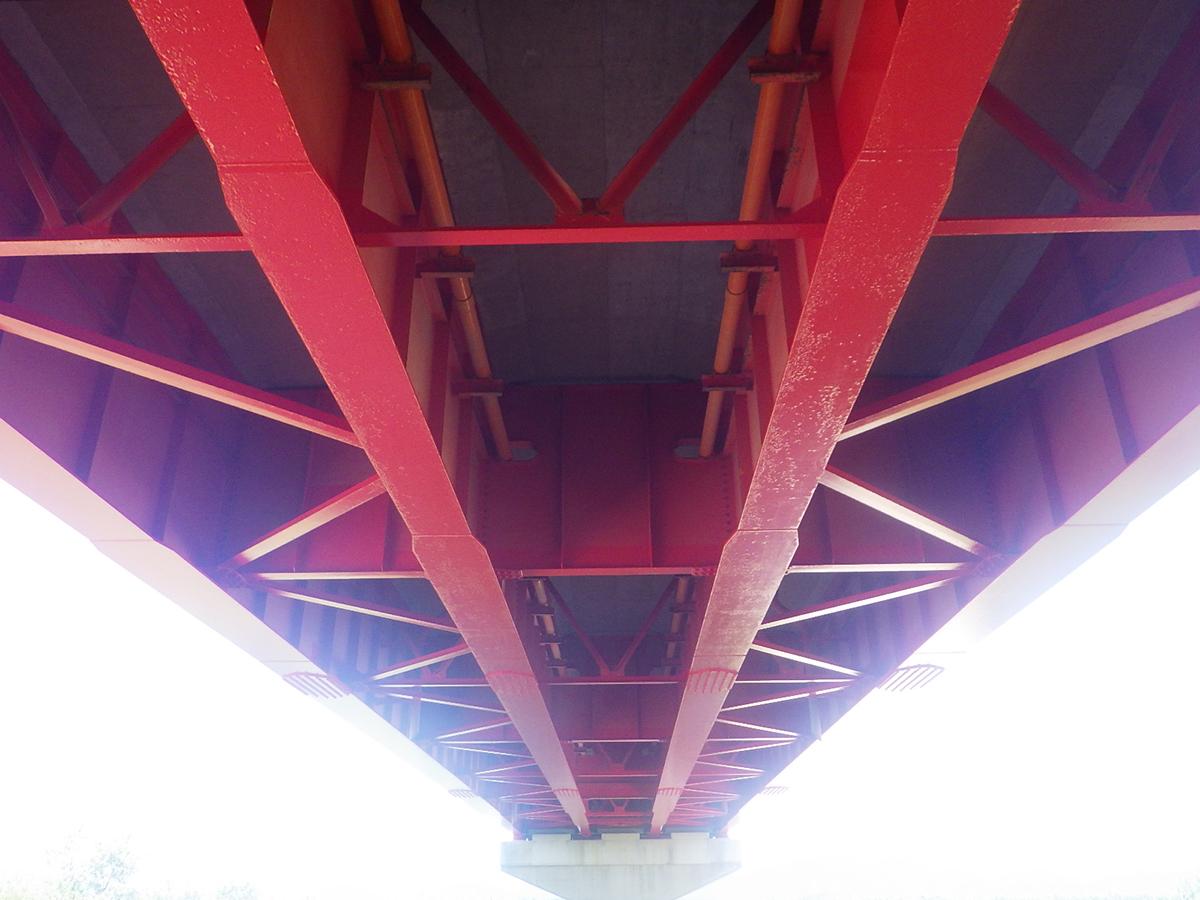 渡部 一般県道多伎江南出雲線古志大橋など、5橋で部分塗装を予定しています。溶射などの新しい技術を採用する予定は現時点ではありません。有害物質を含有する既存塗膜の処理は、塗膜剥離剤による塗膜除去ののち、ブラストによる素地調整1種による処理を基本に、現場ごとに有害物質の種類や作業環境、周辺環境も考慮して処理方法を判断しています。