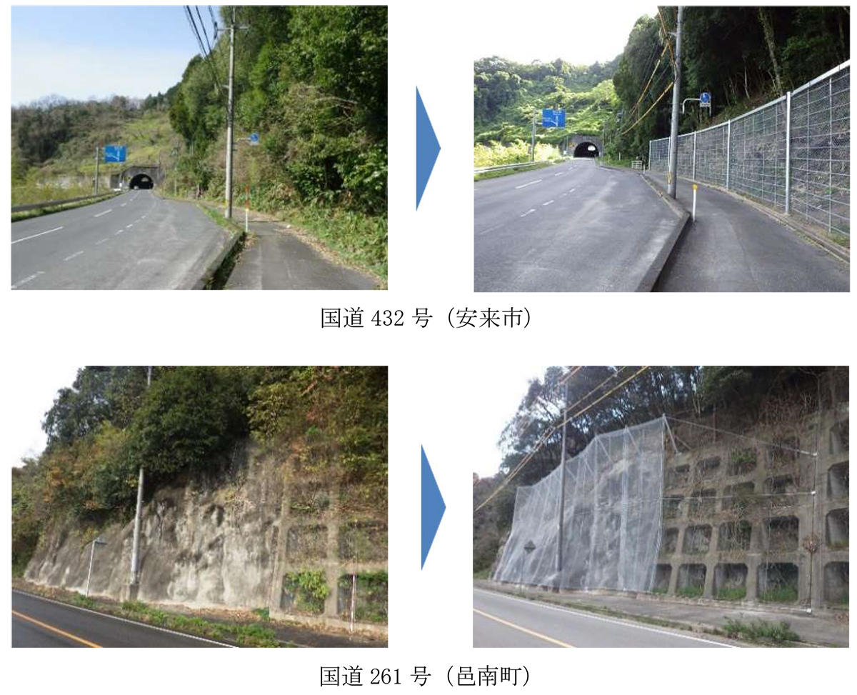 まずは第一段階施工として、落石する頻度の多い30cm未満の石を対象にした対策を最優先で取り組んでいて、現在はそれに注力している状況です。2020年度末までに98箇所で第一段階施工が完了しました。