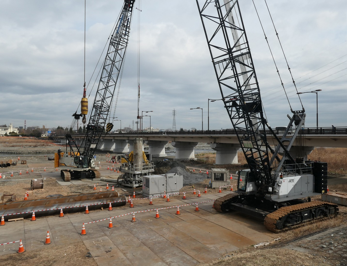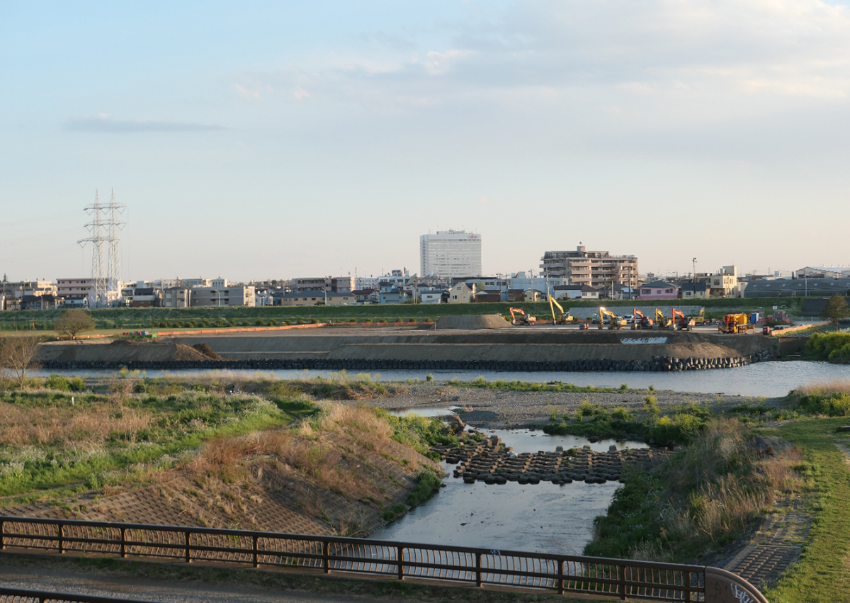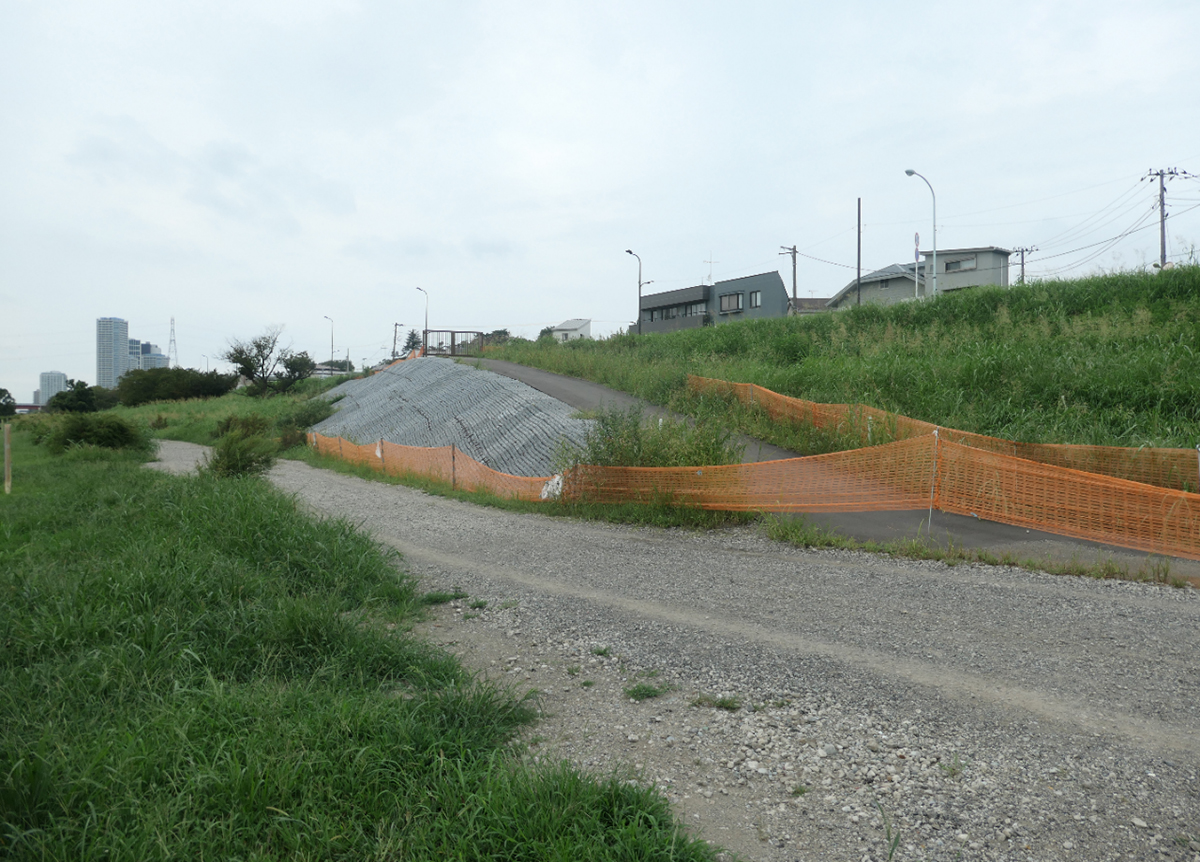 奥山 2018年度に川崎市側の右岸低水護岸工事から着手し、2019年6月に完成しました。多摩川左岸にあたる世田谷区側では2019年度から2020年度にかけて、架橋位置の上流に搬入路を設置しています。下部工では、橋脚1基(P3)および橋台1基(A2)が契約となり、現在工事着手に向けて準備を進めています。