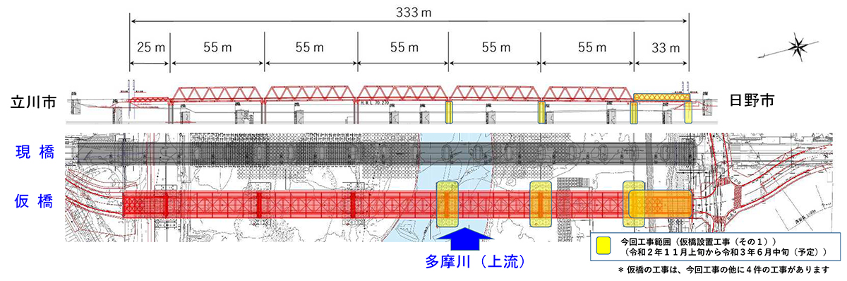日野橋架替えにともなう仮橋ではトラス形式を採用