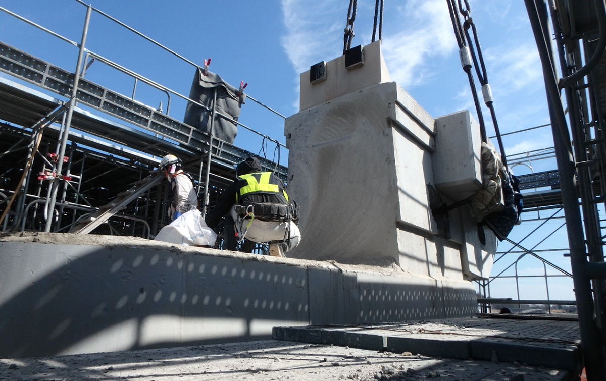 P5橋脚は河床以深にある基礎部分を残置し、柱部のみを撤去することで施工期間の短縮を図りました。上部工については、RC床版から鋼床版に変更して軽量化を図っています。