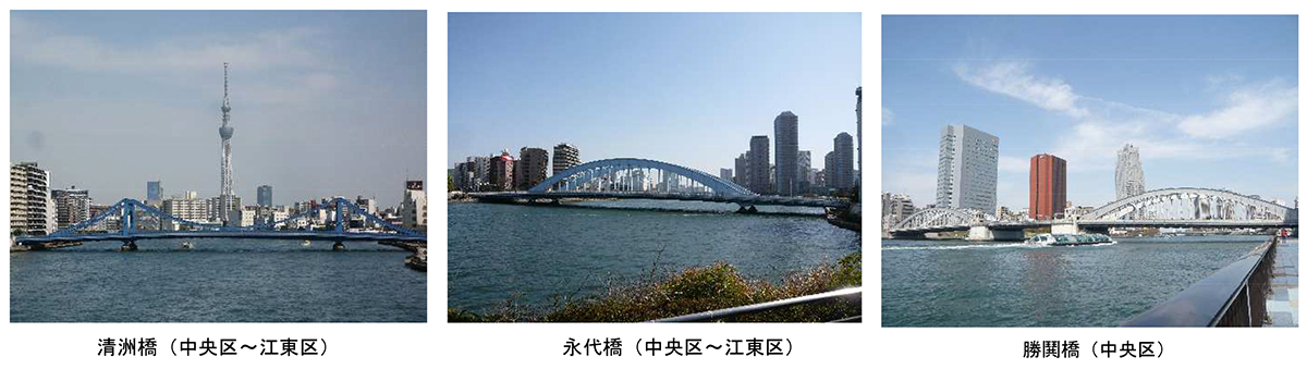 隅田川に架かる吾妻橋、永代橋、清洲橋では長寿命化事業完了