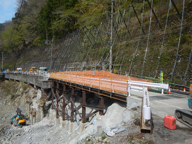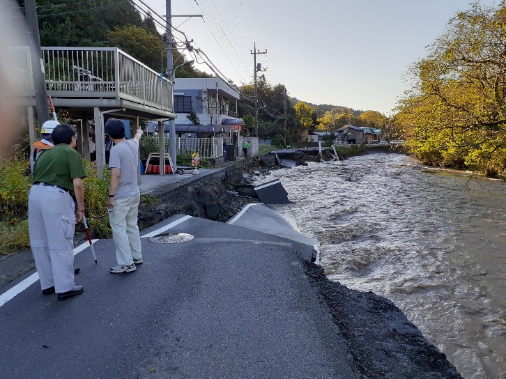 奥山 2019年の台風19号では、土砂の流出や道路の崩落などにより、管理道路の31箇所で通行止めが発生しました。被災後、速やかに応急復旧工事に着手し、大規模な崩落が発生した一般都道184号日の出町大久野地区などで仮設道路を設置するなどして、順次交通開放を行い、2020年5月にはすべての箇所で通行止めを解除しました。