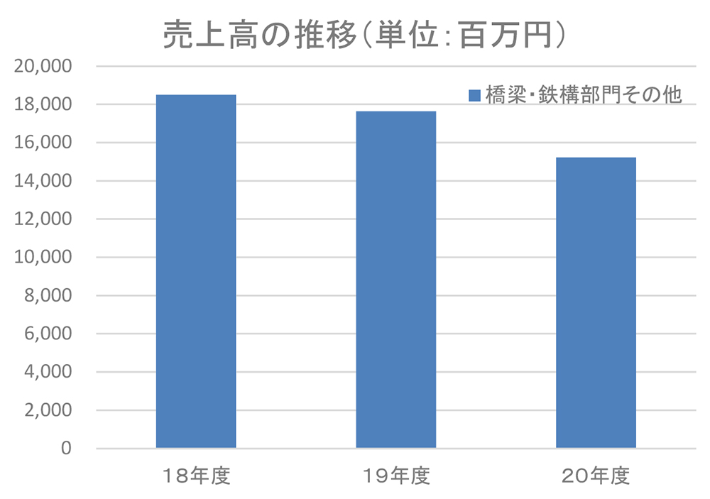 当社の業績は減収減益となったが、受注高は橋梁、鉄構ともに伸びており、特に鉄構部門の受注高は前年度が少なかったこともあり大幅増となった。