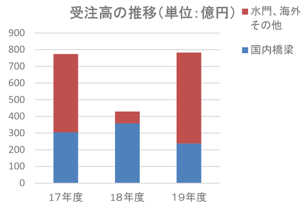 業界全体でみると、鋼橋の発注は20万tには到達しなかったが、19年度に比べて回復した。加えて保全工事も増加しており、当社受注でも保全事業の割合が新設を上回った。防災・減災を含めた保全工事の需要は今後も高水準を維持するとみている。