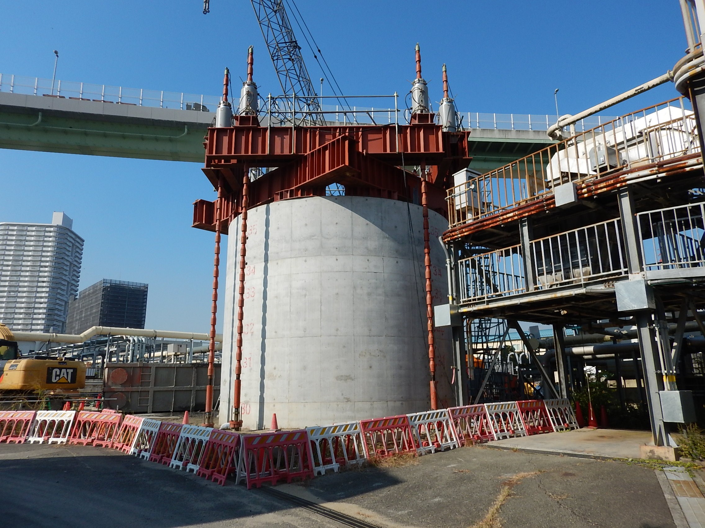淀川左岸線延伸部に関して、「淀川左岸線工業用水導水施設等撤去工事」(奥村組)では支障物撤去を鋭意進めています。「豊崎換気所新築及び開削トンネル・下部工事」(清水・東亜・大豊JV)は建築と土木を一体にした工事で、支障物撤去、土留工、基礎工、共同溝・ダクト工、橋脚工といった地下の函体工事や橋脚基礎の工事を進めていて、2022年度も引き続き行っていきます。
