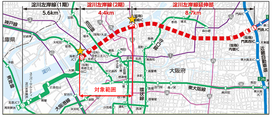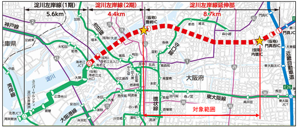 淀川左岸線延伸部は7.6km、同(2期)4.4kmを担当