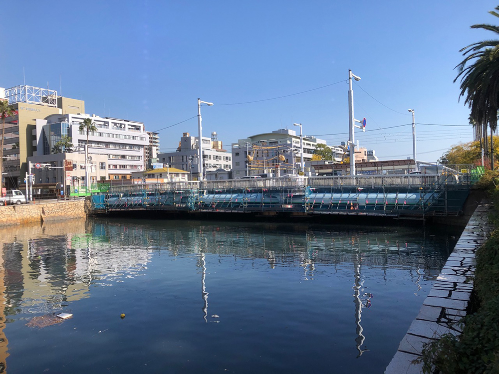 国道32号高知橋 桁下クリアランスがなく、路面電車も往来する厳しい現場環境