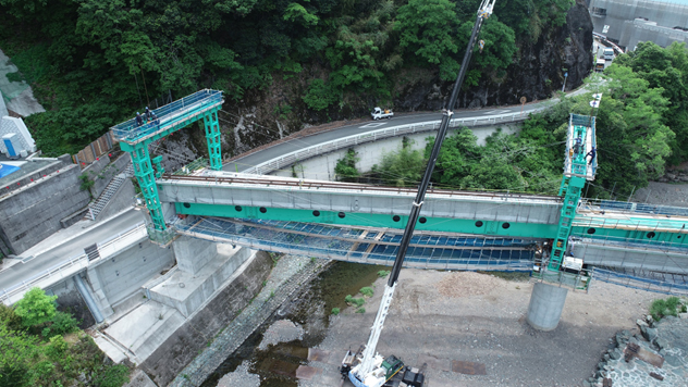 郷高架橋(仮称)上部工架設時写真(井手迫瑞樹撮影)