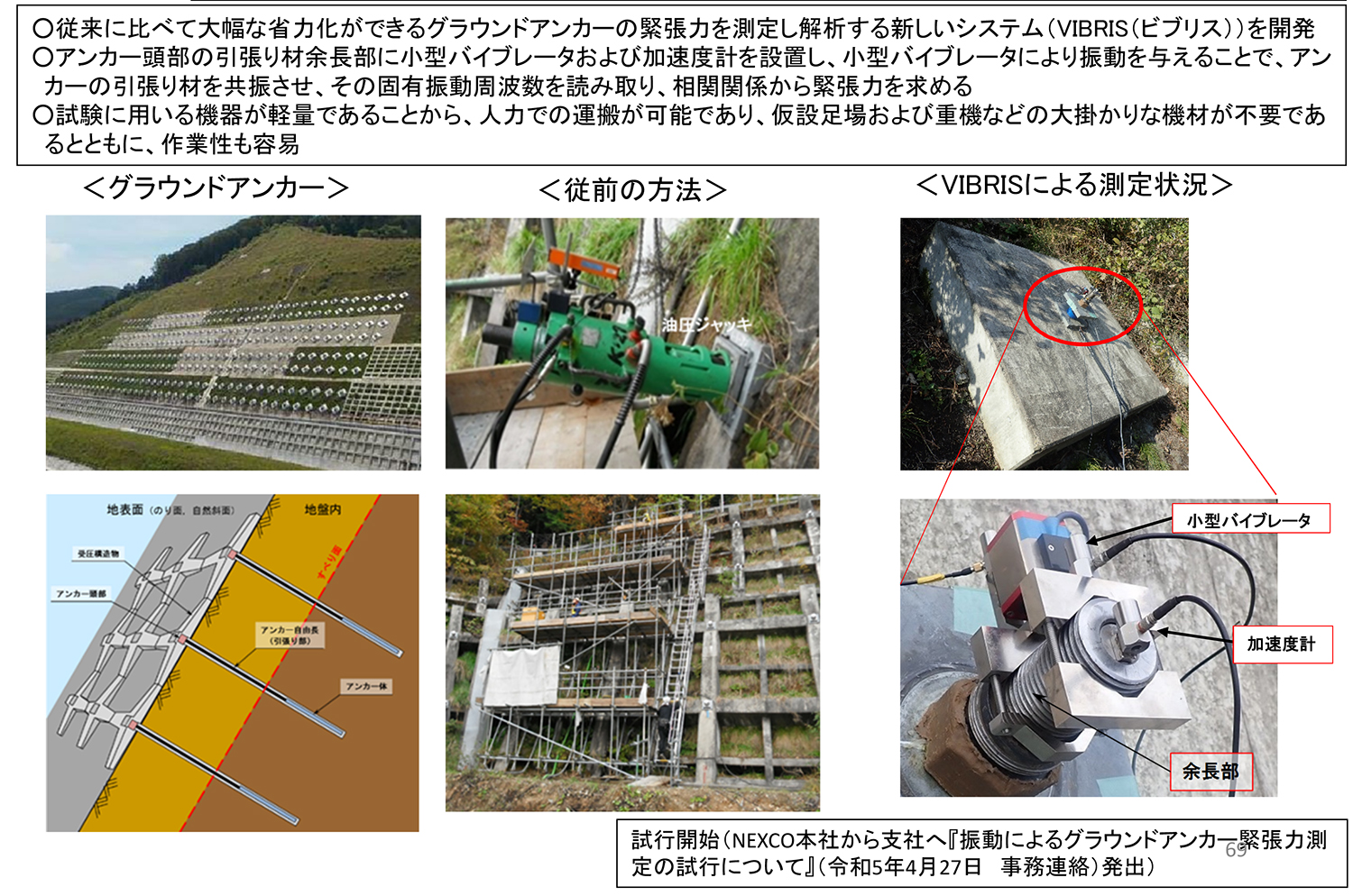 アンカー緊張力測定システムや危険度の少ない日常点検車など