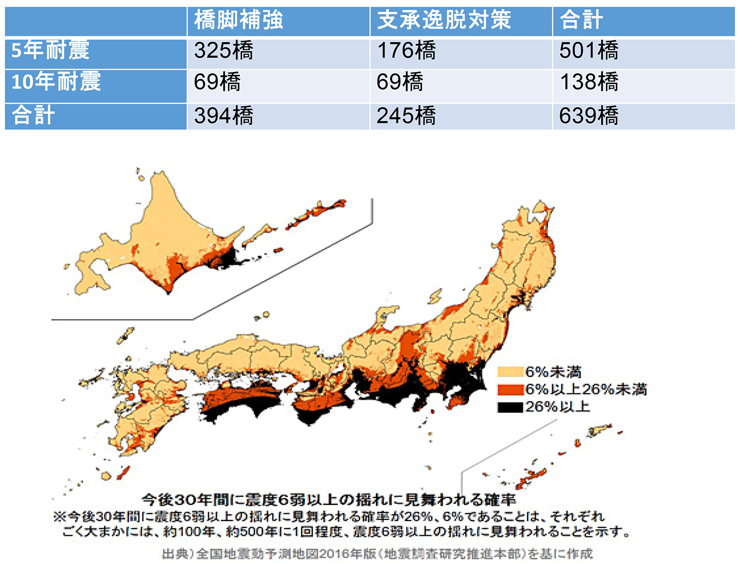 大規模地震の発生確率の高い地域での耐震補強325橋は工事発注が概成
