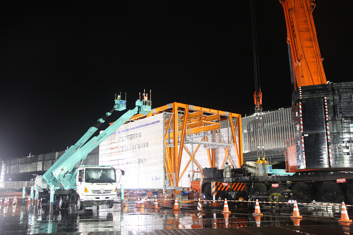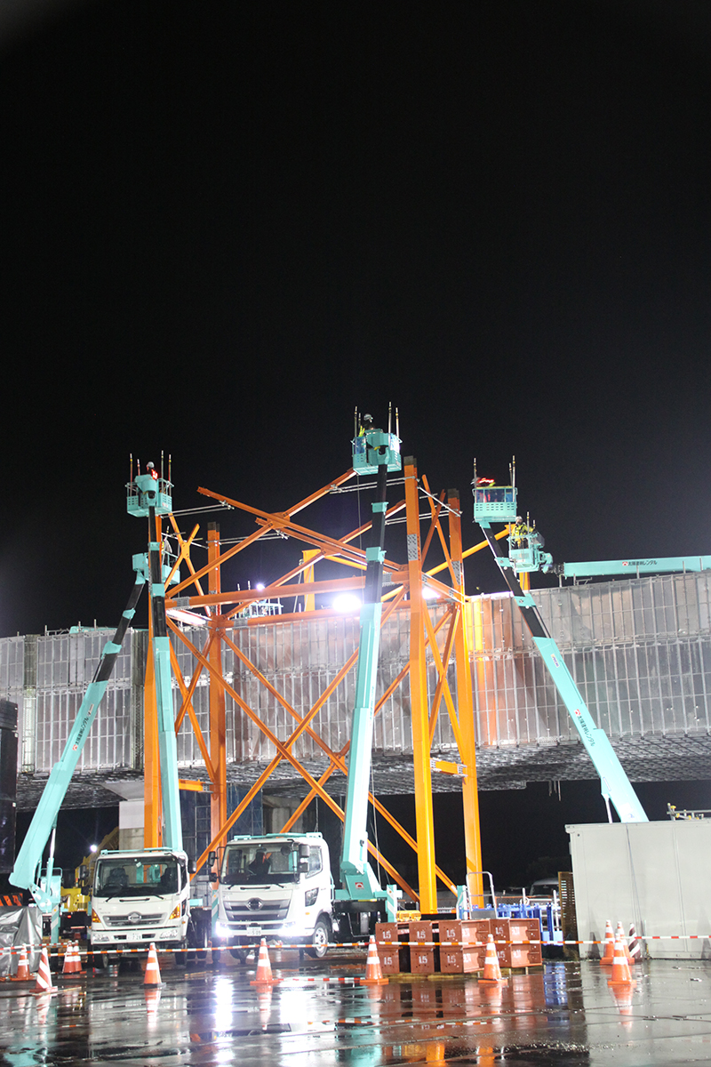 揚重機は夜間に架設した