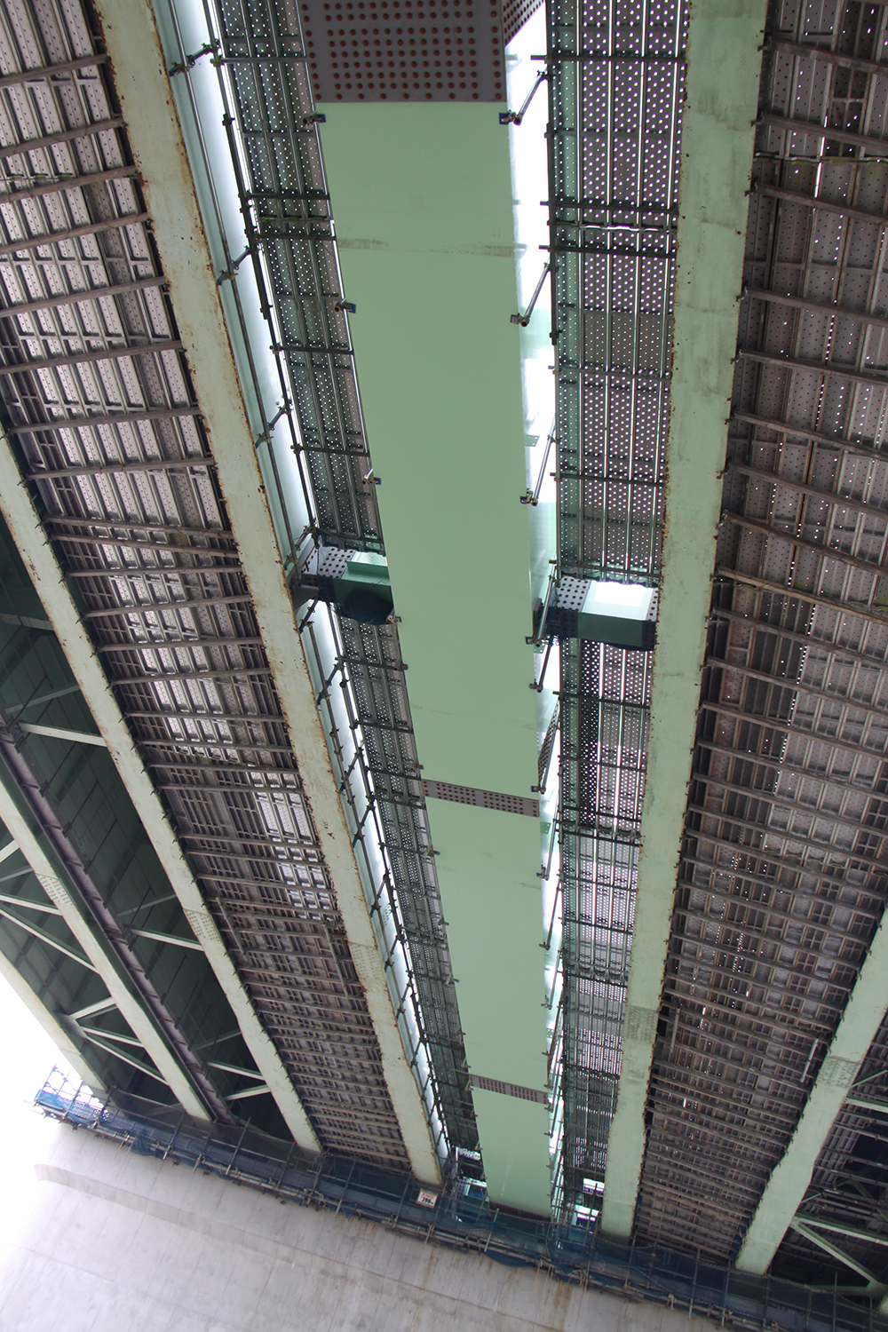 名神長良川橋 中分側に桁を設置することで床版取替中も4車線を運用