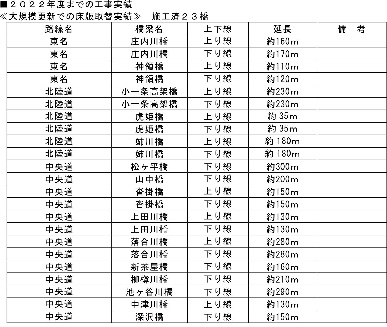 末吉 長いです。ただ、飯田管内の大沢川橋の床版取替工事(今年春・秋施工)では恵那山トンネルを含む約17kmの規制延長というのがあります。