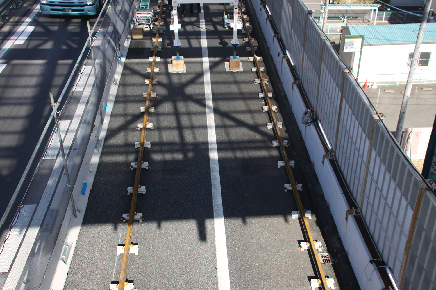 弥富高架橋の床版運搬用軌条設備