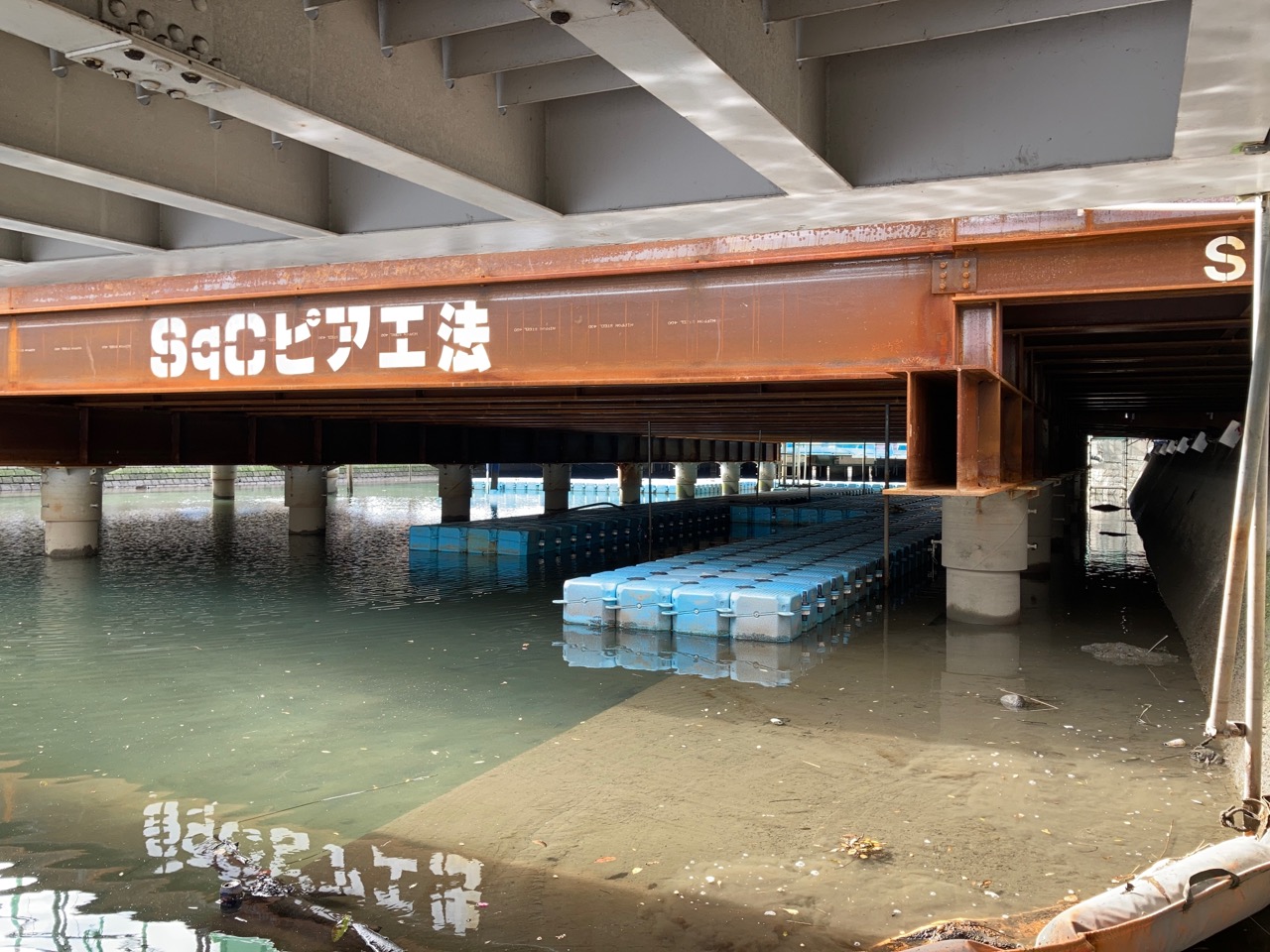 高知橋 パイルベントを深梁工法で繋ぎ合わせる