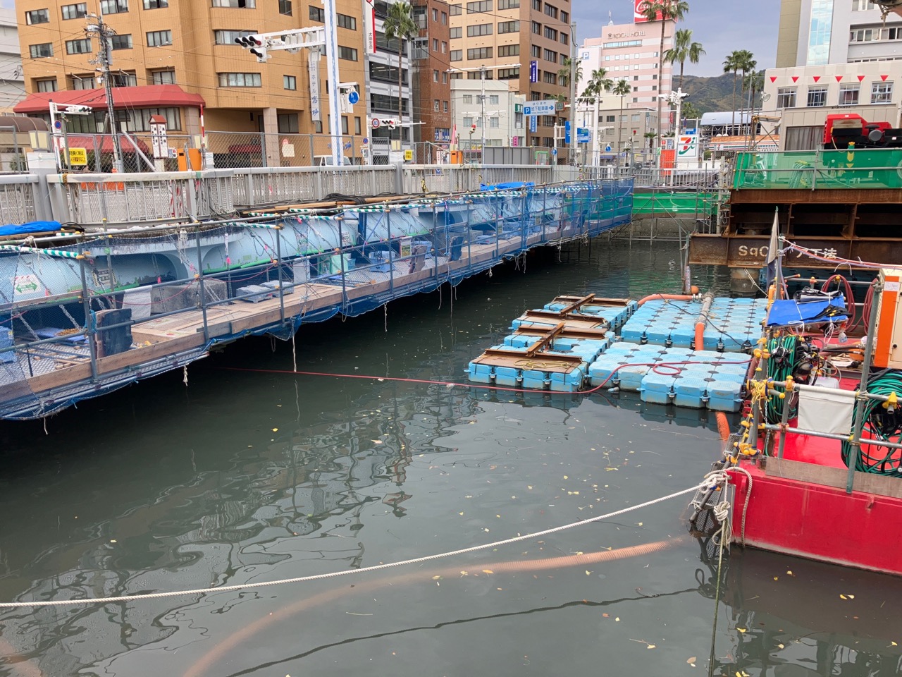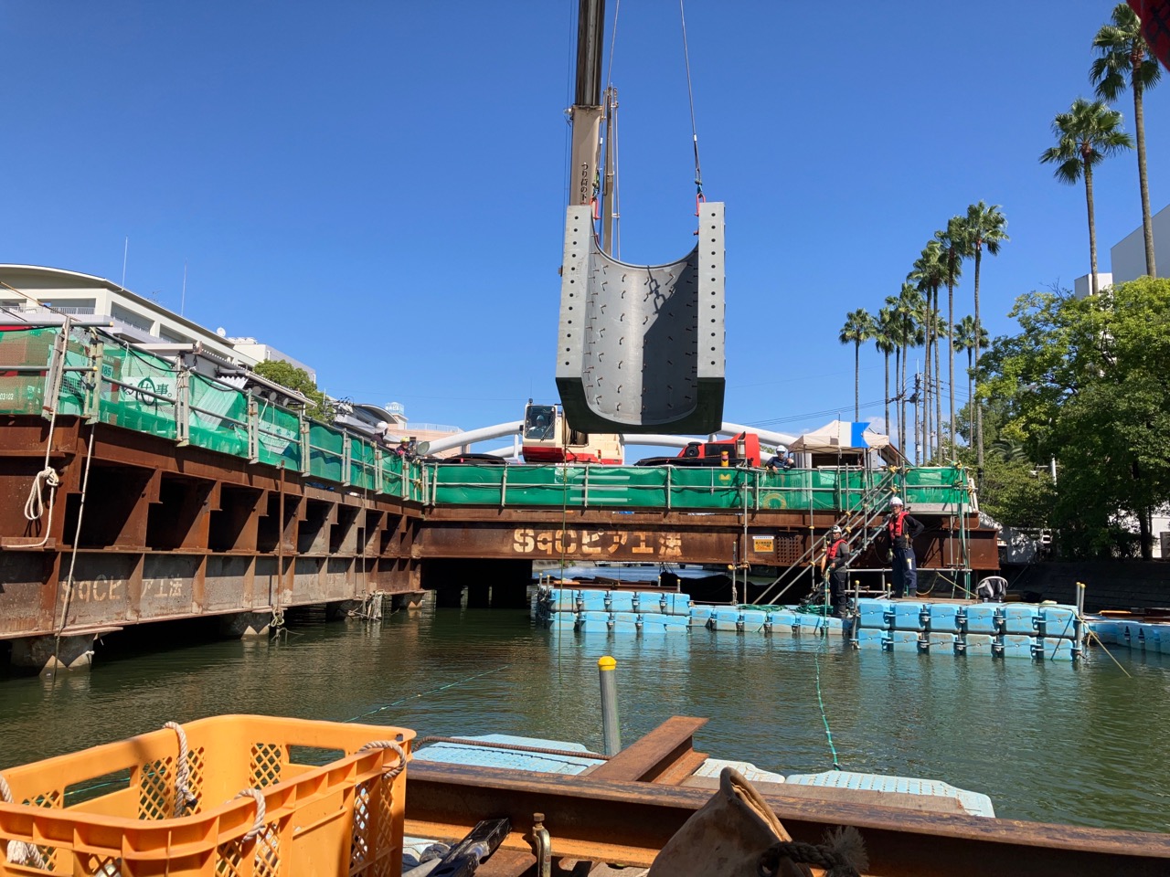 高知橋 仮橋の設置状況/吊り足場設置状況