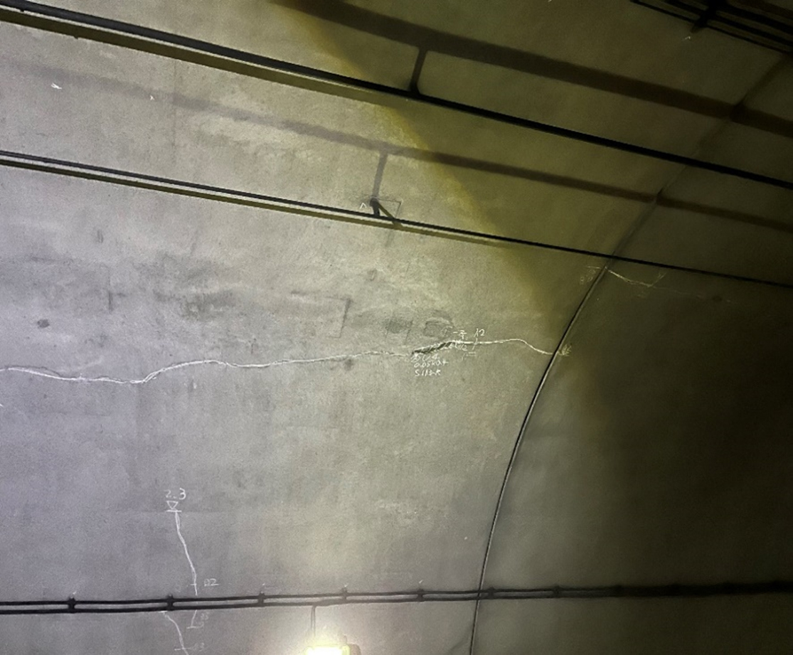 材質劣化(目地およびひび割れ沿い、覆工表面の一部にうき・劣化)、および漏水(目地、ひび割れ及び裏込め注入工跡、溝切工)が殆どを占めます。