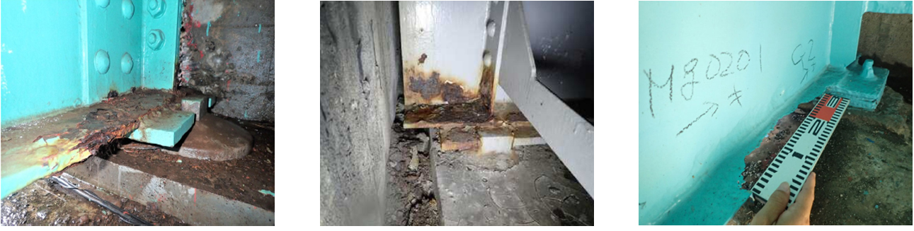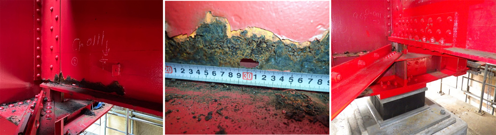 また、主桁端部の腐食については伸縮装置からの漏水や土砂堆積などの影響により、湿潤環境になりやすく、腐食が進行したと考えられます。