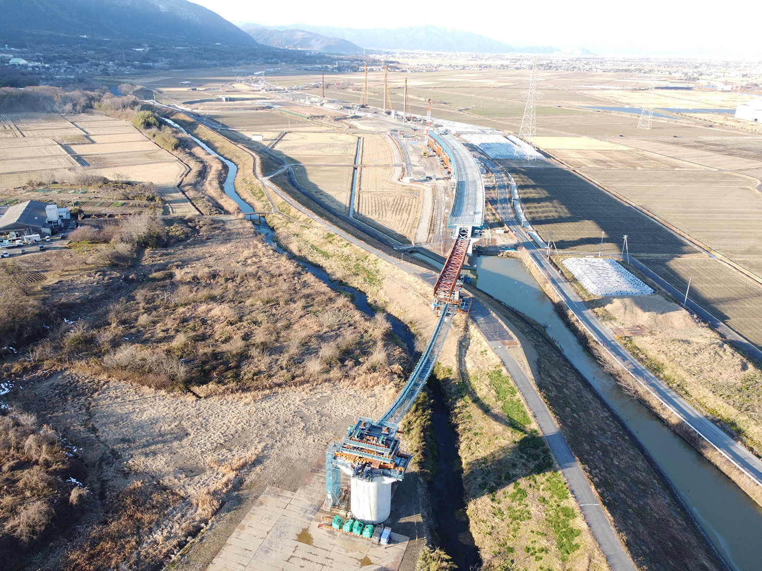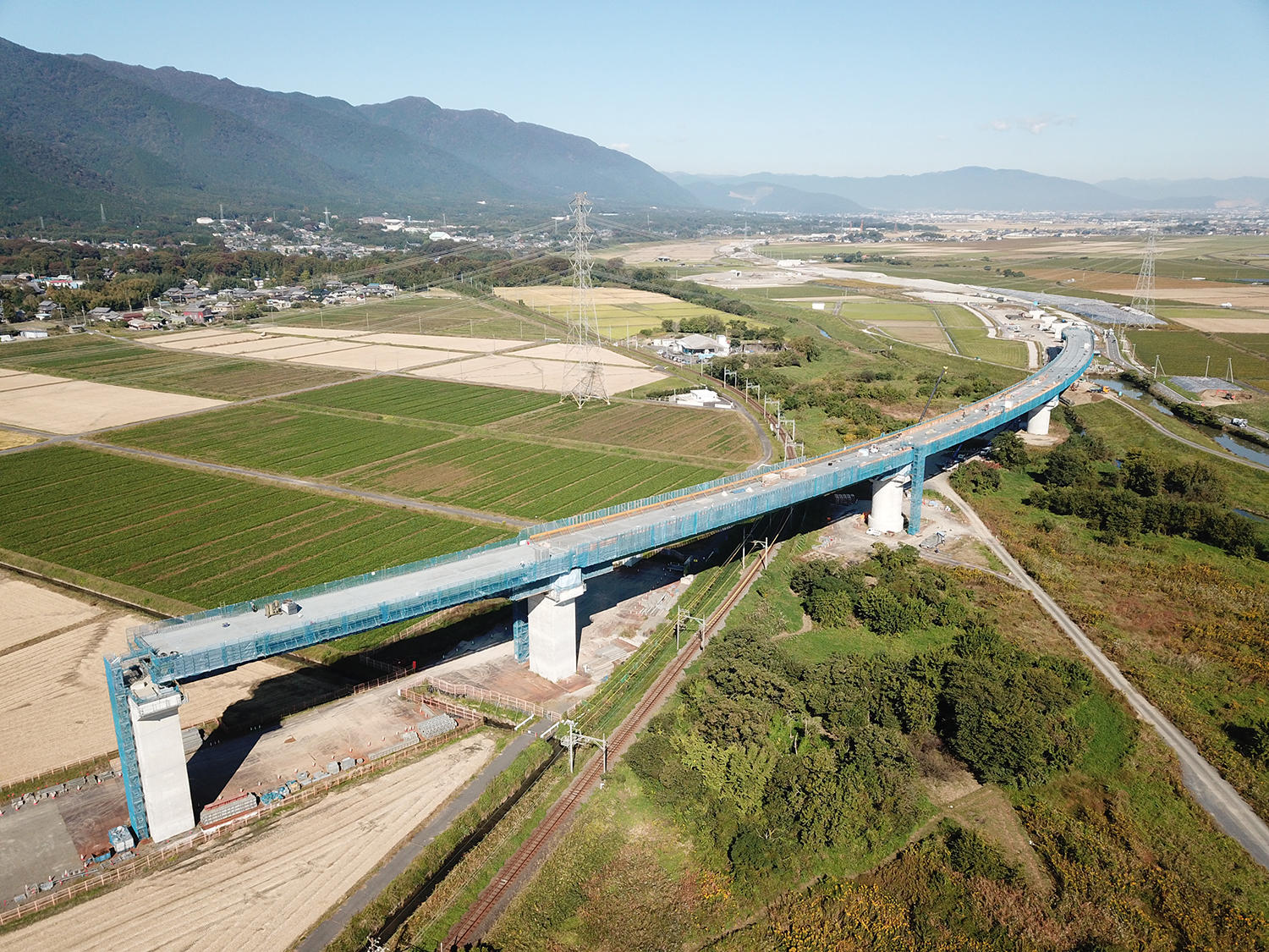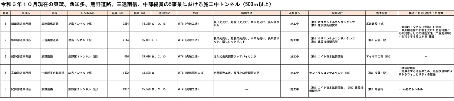 特徴的なトンネルは、やはり青崩峠トンネルです。青崩峠は、日本を二分する中央構造線上にあります。同峠付近は中央構造線の影響を受けた脆弱な地盤となっており、その対策として二重支保工などを採用して施工しています。2023年5月26日に貫通しており、現在は覆工などの施工を進めています。