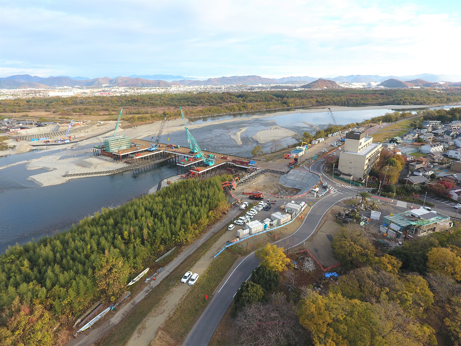 望月 まず川島大橋があげられます。同橋は岐阜県が管理する一般県道松原芋島線の木曽川渡河部に架かっていた橋梁ですが、2021年5月の豪雨により、橋脚に洗掘による傾斜などの被害が発生したため、権限代行によって中部地方整備局で架替えを進めています。