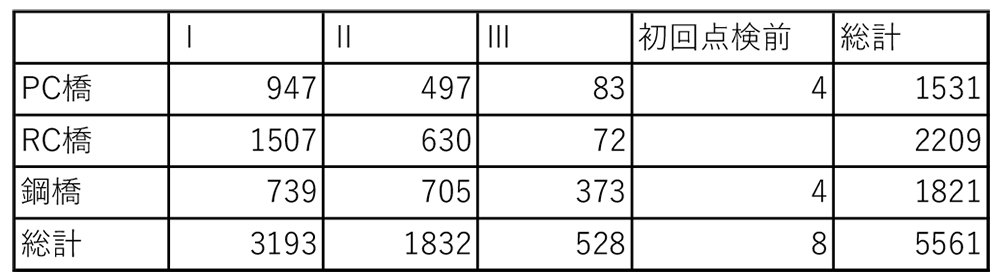 ――橋梁とトンネルの定期点検結果の内訳を教えてください