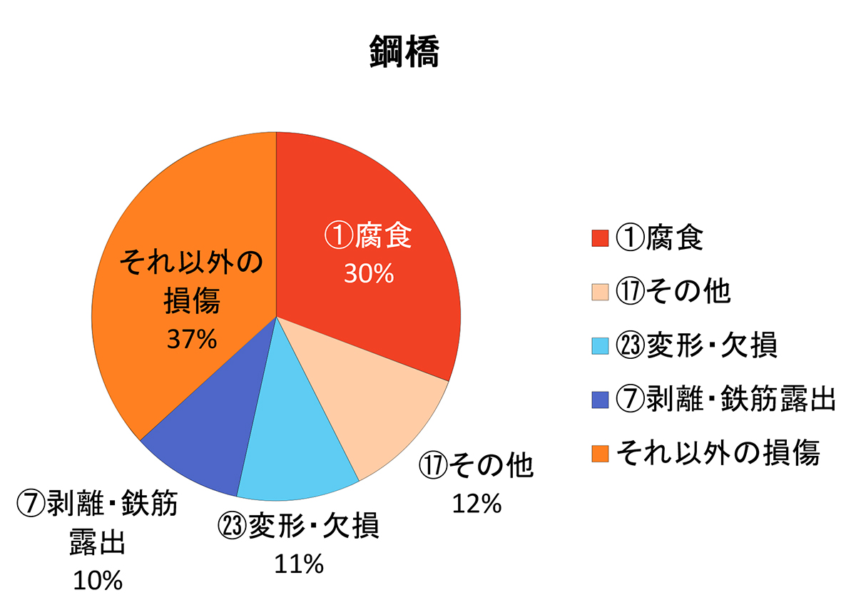 鋼橋は腐食による損傷が顕著 原因は防水・排水不良が大半