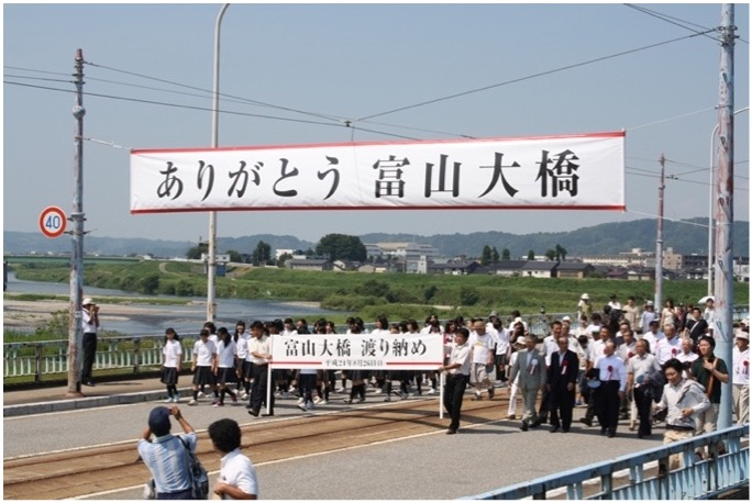 松井 富山大橋の架替えでは、旧橋への感謝の気持ちを込めて、渡り納め式が行われました。新橋の設計時からの富山県の土木部長の発案で、粋だと思いました。新橋と旧橋が並列している時期があり、花火大会の桟敷にしたりもしました。