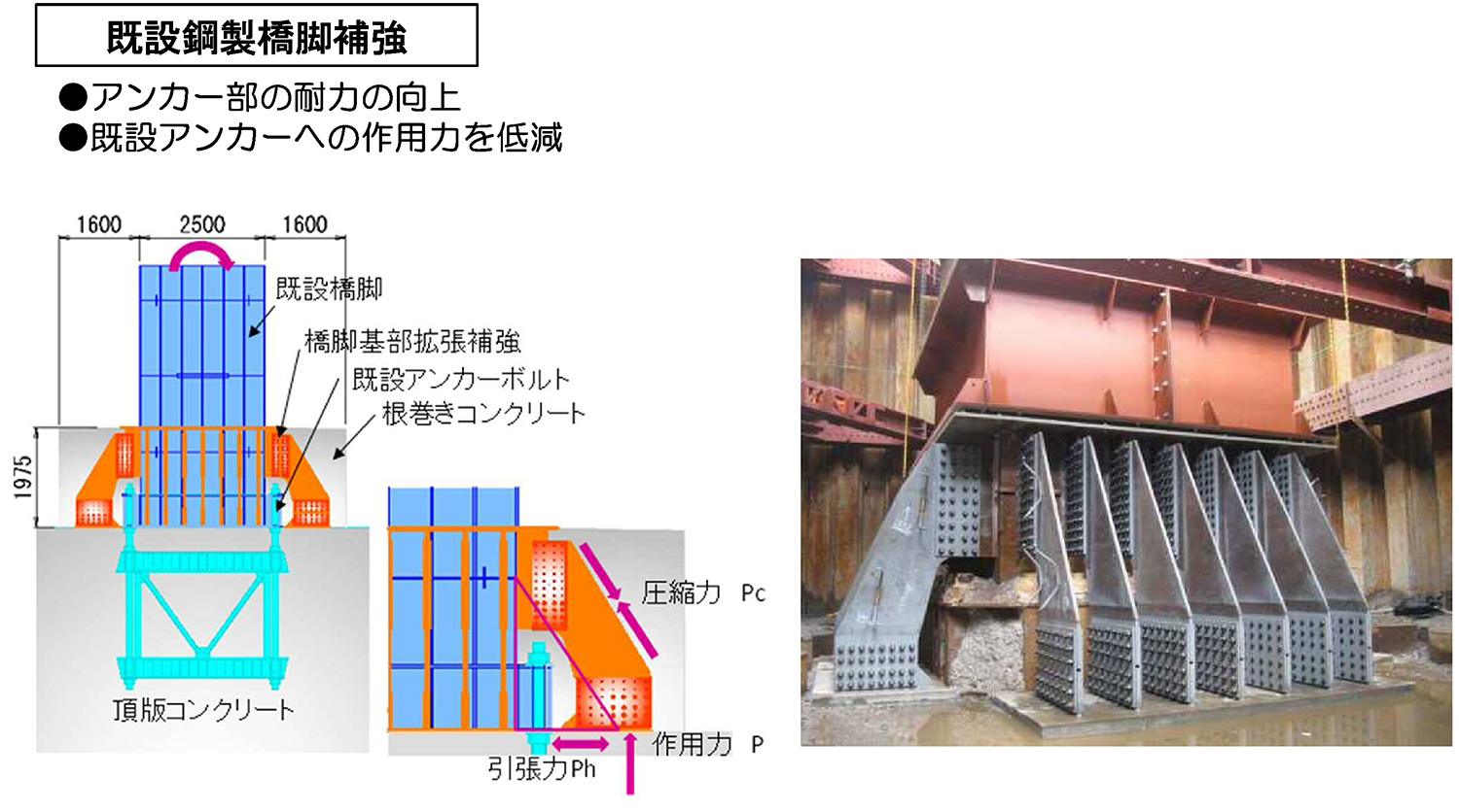 P82橋脚 支圧板を拡大して抵抗面積を広くしアンカーボルトへの負荷を低減