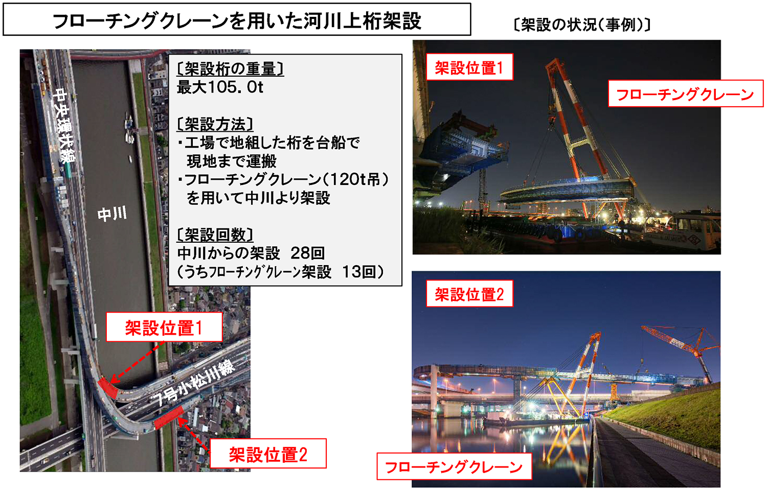 首都高速小松川JCT新設 河川部の桁架設が完了