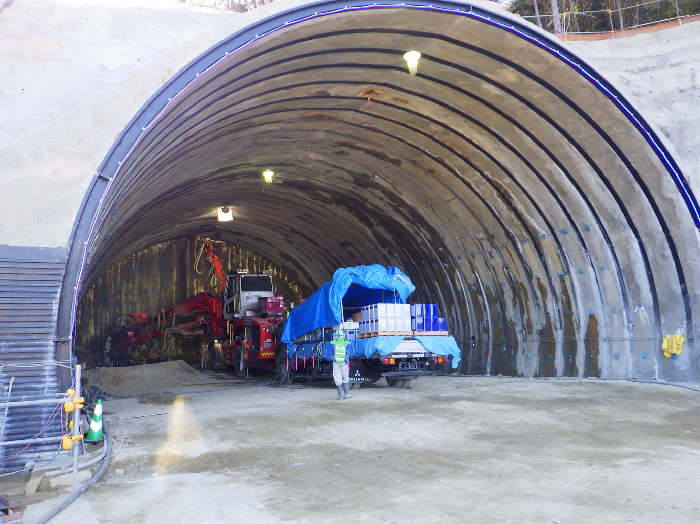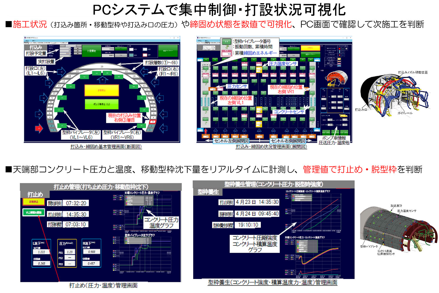 トンネル覆工の自動施工化(右写真:井手迫瑞樹撮影)